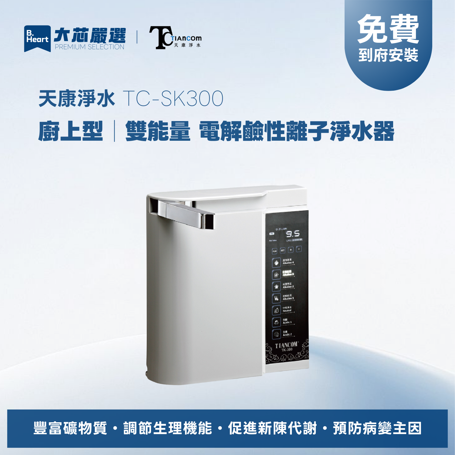 天康淨水 TC-SK300 雙能量觸控電解水機 廚上型電解鹼性離子淨水器