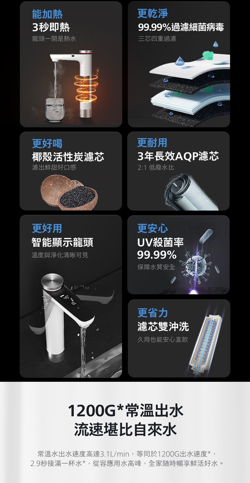 200 澎湃大流速|2.9秒滿杯如自來水,每分鐘3.1公升超大出水量