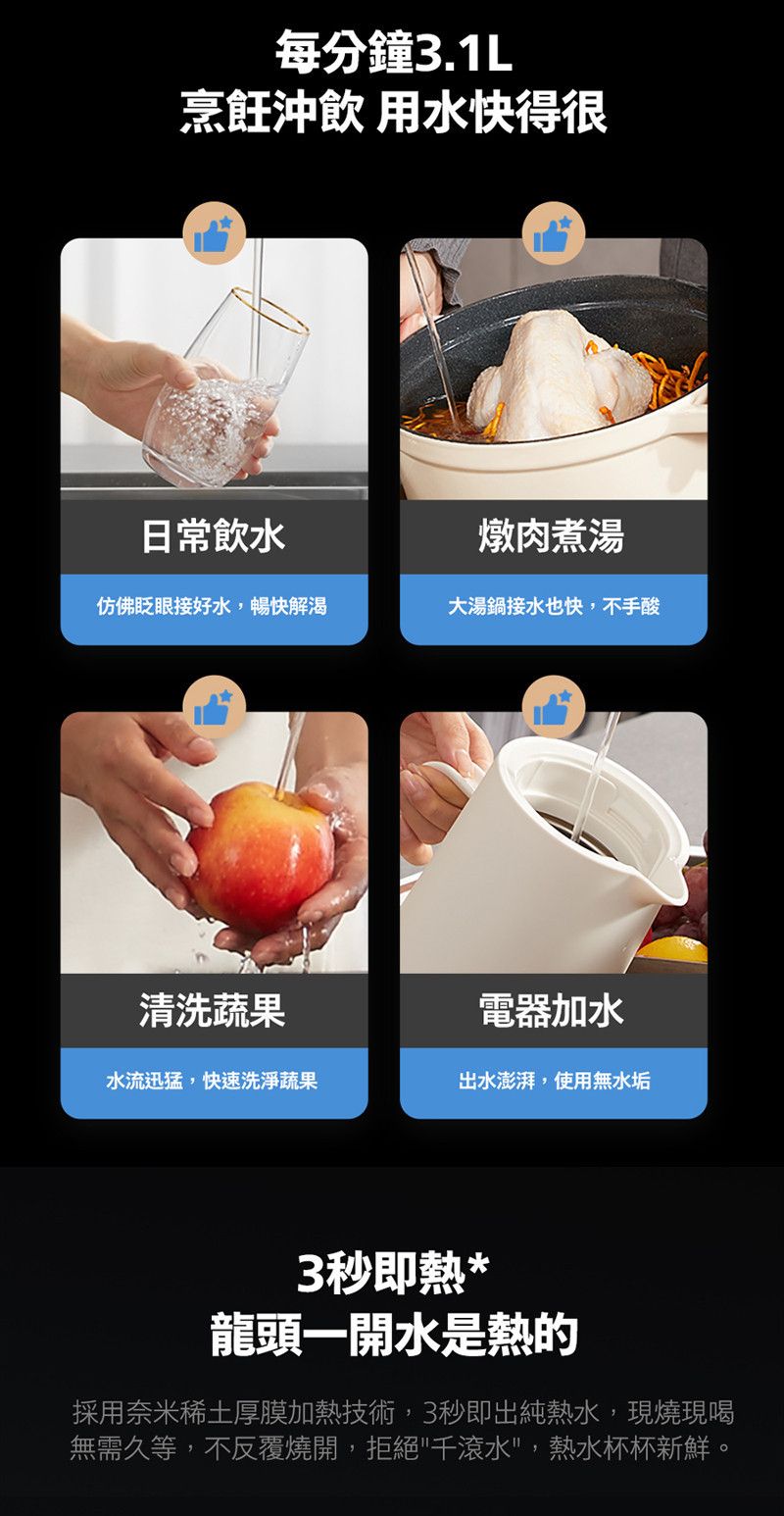 110V電壓,奈米瞬熱技術|3秒即出熱水