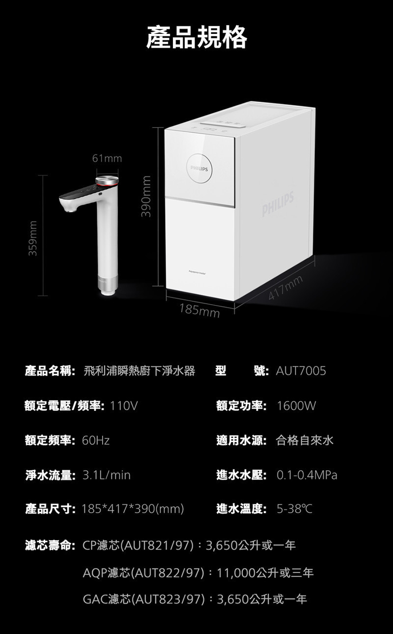 飛利浦 AUT7005 小瞬靜 瞬熱廚下淨水器