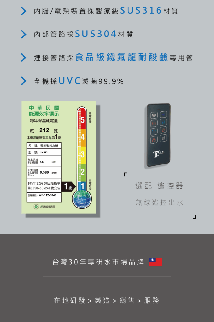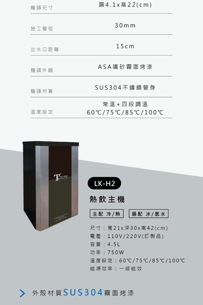主配 雙溫採用 LK-H2 廚下溫熱飲機